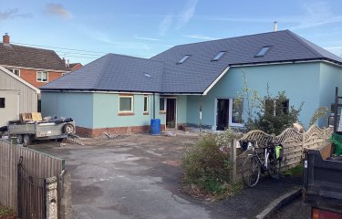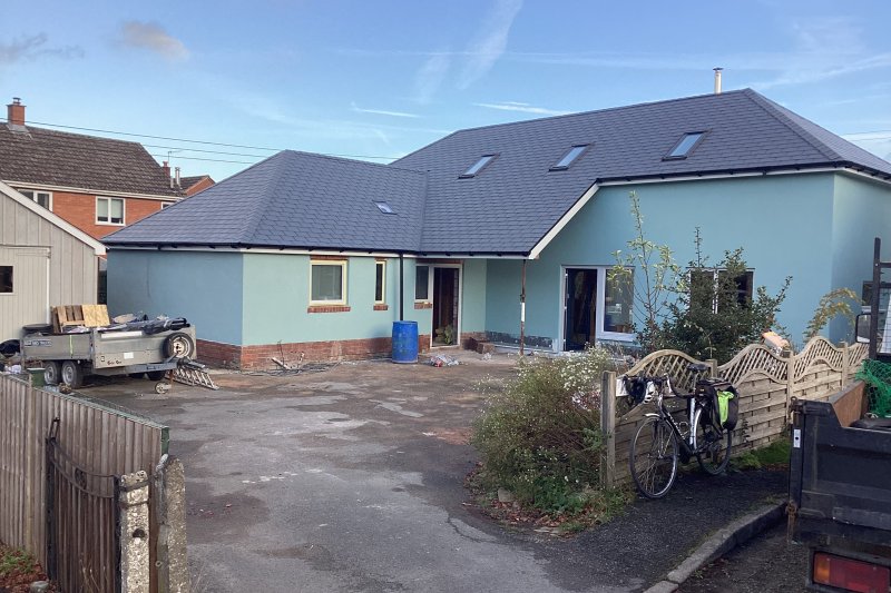 Jim welcomes you to his 1953 detached bungalow with cavity walls and a slate roof, retrofitted to AECB Carbon Light Retrofit standard (almost “Enerphit”). It has been rebuilt with a new first floor to the main part and a more affordable upgrade to an attached studio part. It's at first-fix stage so lots of details that you can still see!