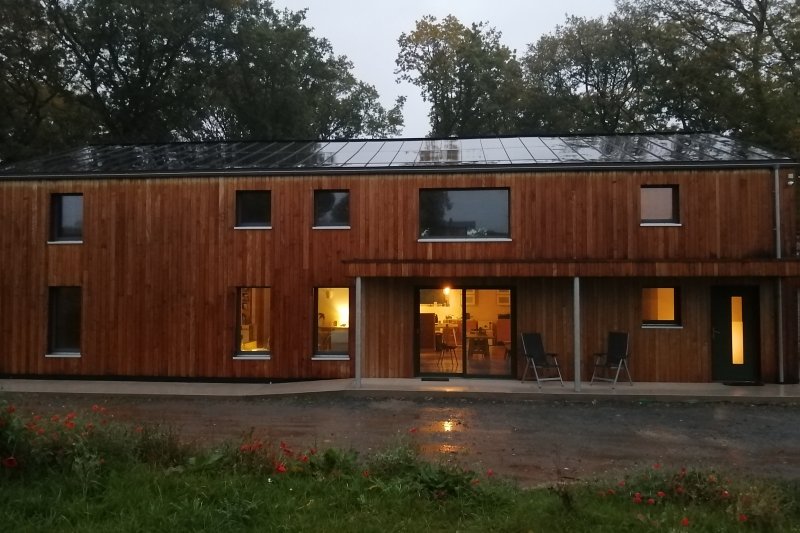 Laila welcomes you to her new build Passivhaus near Kington. The construction is timber frame (I-beams), timber clad, with a standing seam steel roof with integral solar.